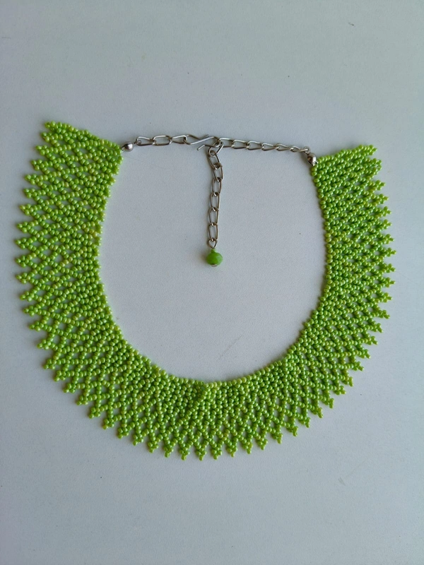 Fashionifyy LIGHT GREEN necklace Sizzler . Are you looking for a uniquely fashionable jewelry set to add a touch of finesse to your look? Look no further than our Pristine LIGHT GREEN Handmade Fashionifyy Collar Necklace Set that is perfect for women and girls! Whether you are attending an anniversary, engagement, festival, wedding, party, or just looking for a special gift for your loved one, this necklace set is the perfect choice. It is crafted from Fabric,Metal, Pearl beads , cream beeds and clasps and has a lovely theme. You are sure to look stunningly beautiful and stand out in the crowd wearing this wonderful necklace set from the Ethnic collection. This lightweight Pristine LIGHT GREEN collar necklace set also provides a great option for making a fashion statement. It has an eye-catching Pristine LIGHT GREEN colour and is perfect for an all-season look. It consists of a Beautiful LIGHT GREEN Necklace