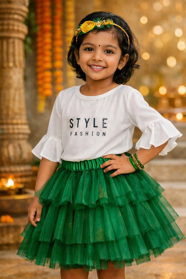 Fashionifyy Girls DARK GREEN RUFFLE Skirt - A448