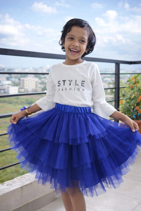 Fashionifyy Girls ROYAL Blue RUFFLE Skirt - A436